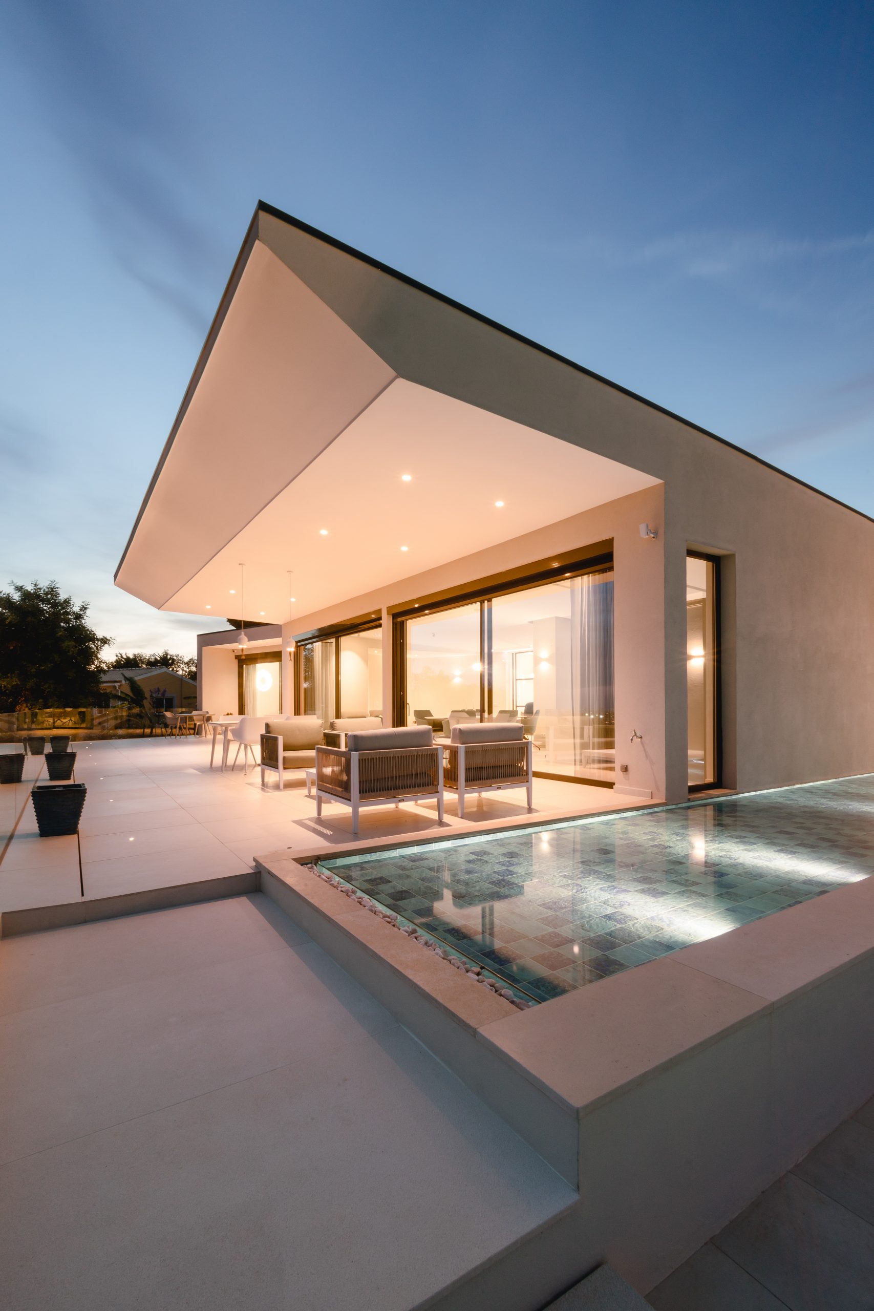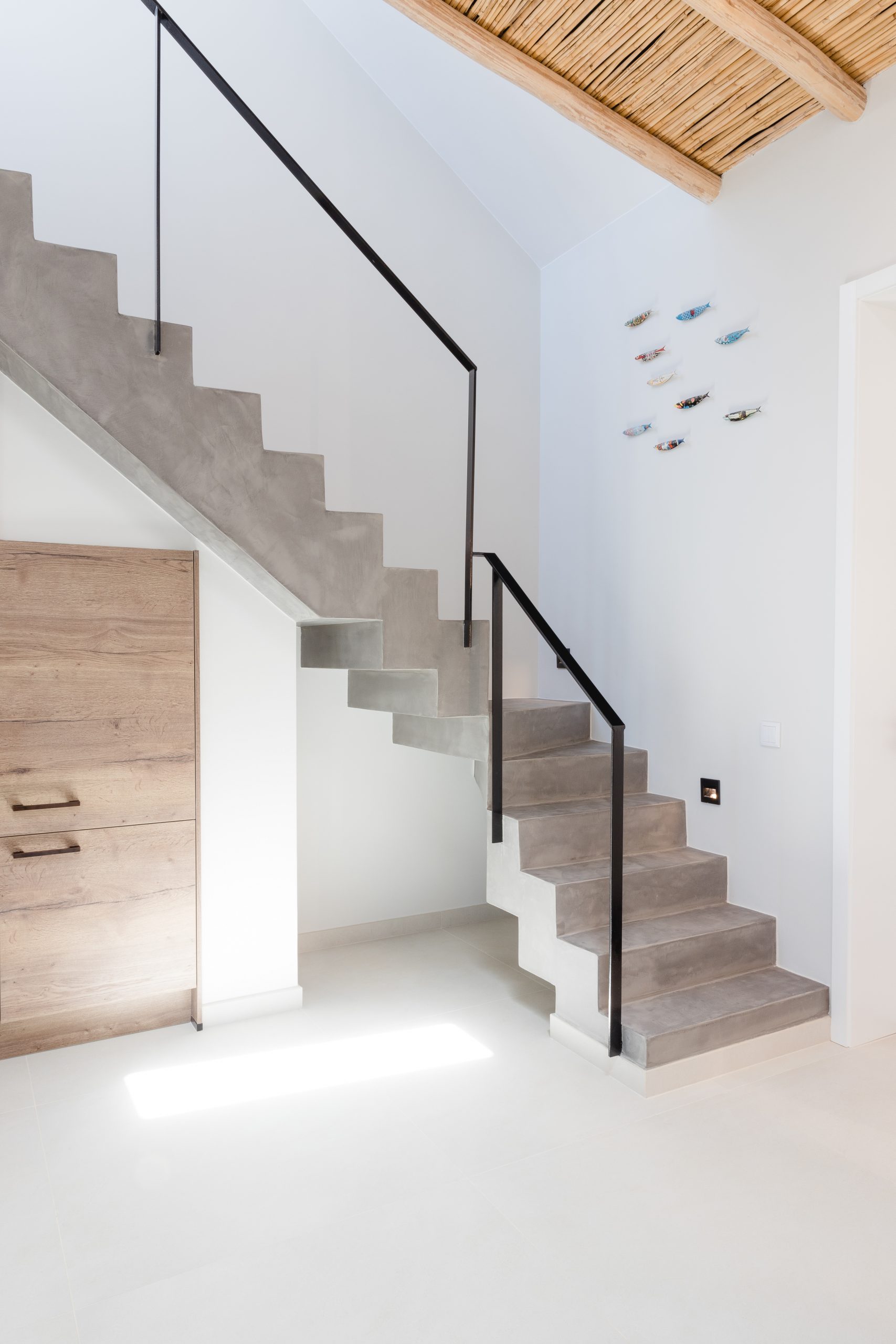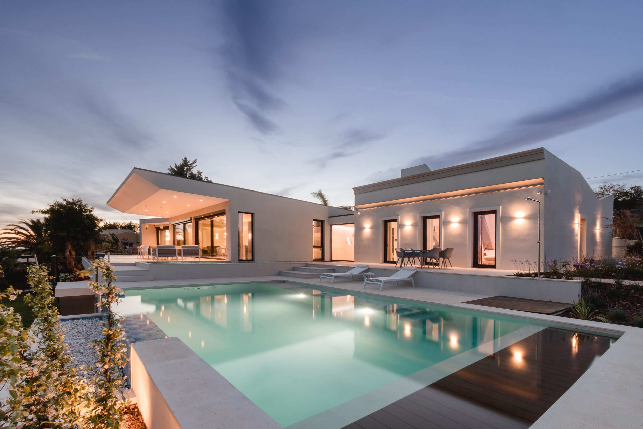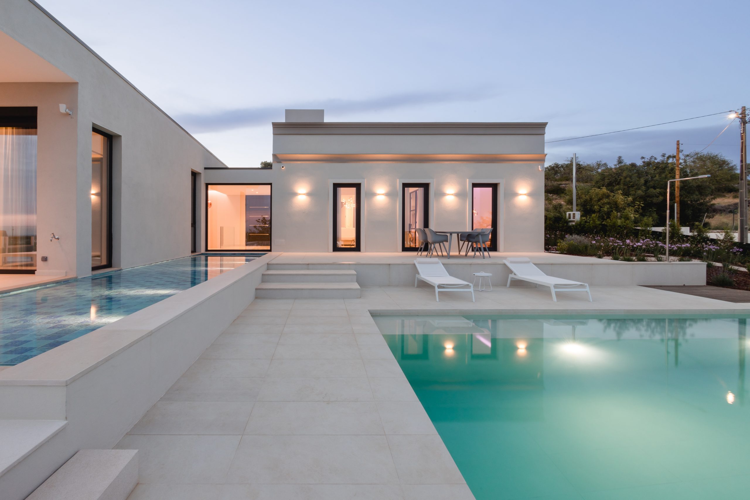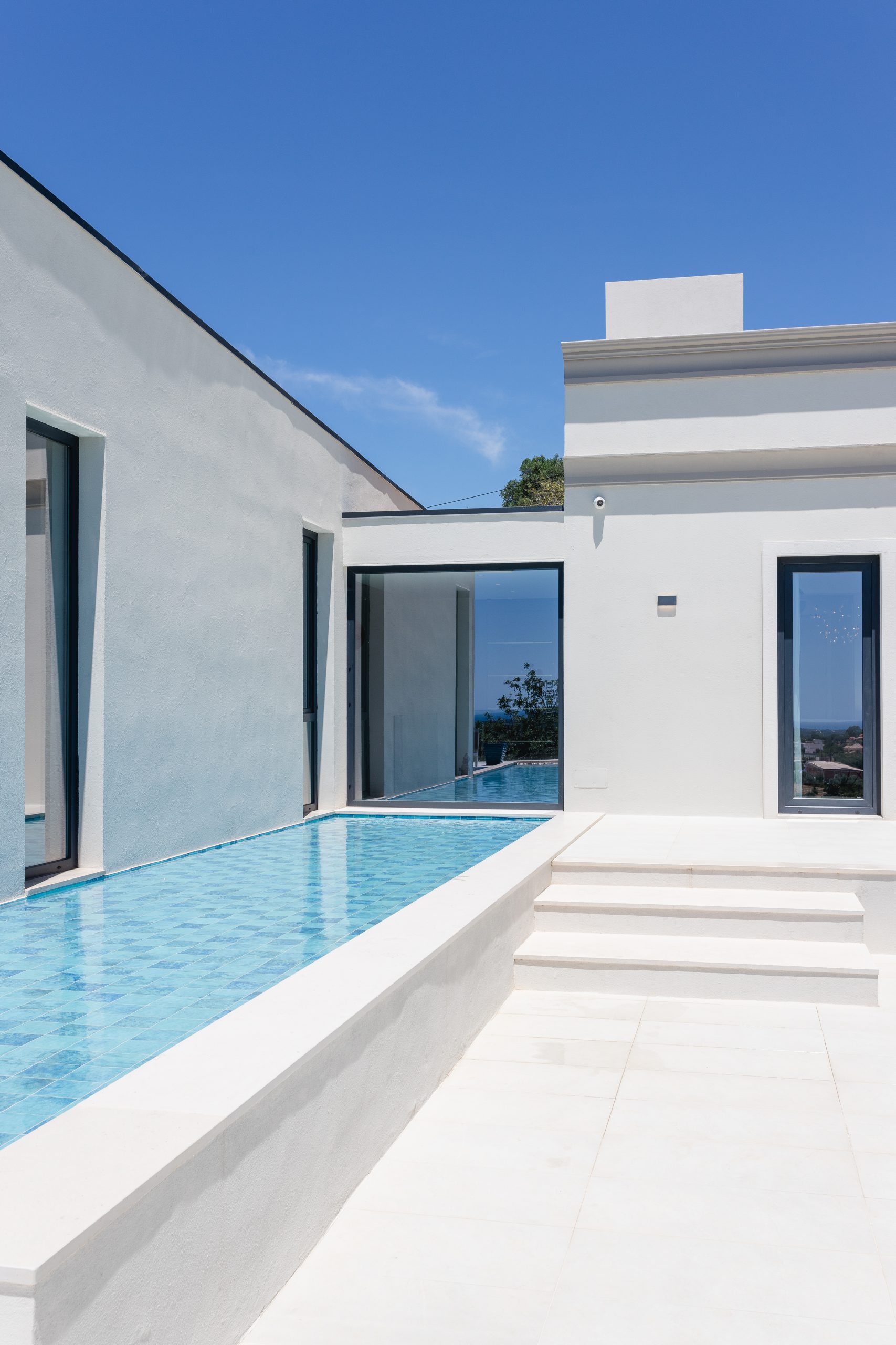 An energy-efficient farmhouse on a hill renovated to maximise sea views, the idea behind Villa NK was to make the most of what was already there, strengthening walls to maximise the durability of the pre-existing structure. Sustainable living was another key aim, with the client seeking airy, comfortable, practical rooms that flow into each other, creating a pleasant living space through architectural design and clever passive heating and cooling features. And then there are the sea views, accentuated by the house opening out to the south. Finally, large, high-performance windows provide sweeping views while protecting the interior from the blazing sun and the light reflecting off the shallow pool just outside.