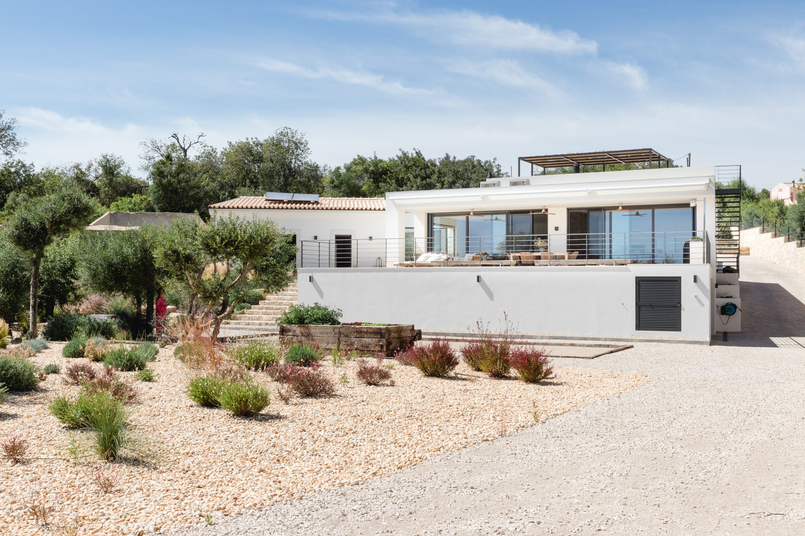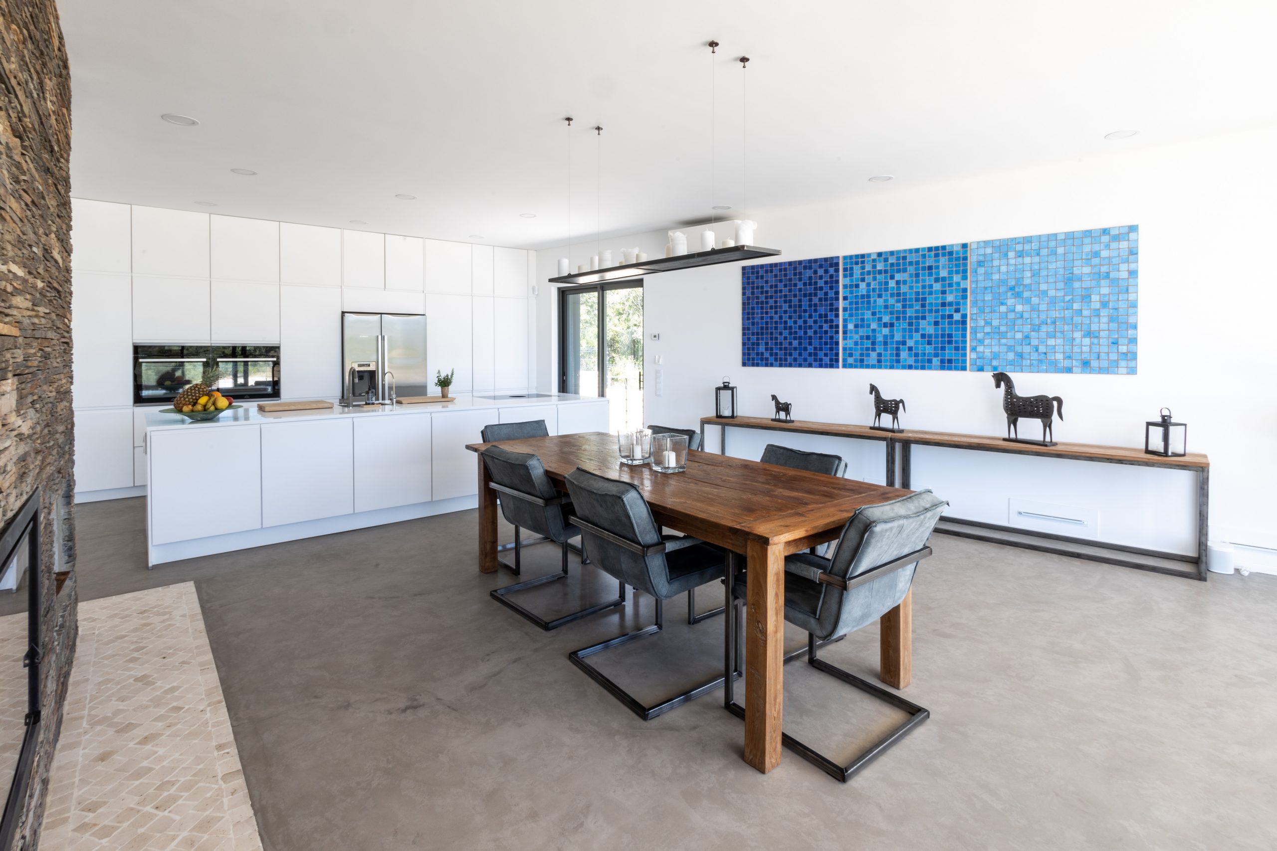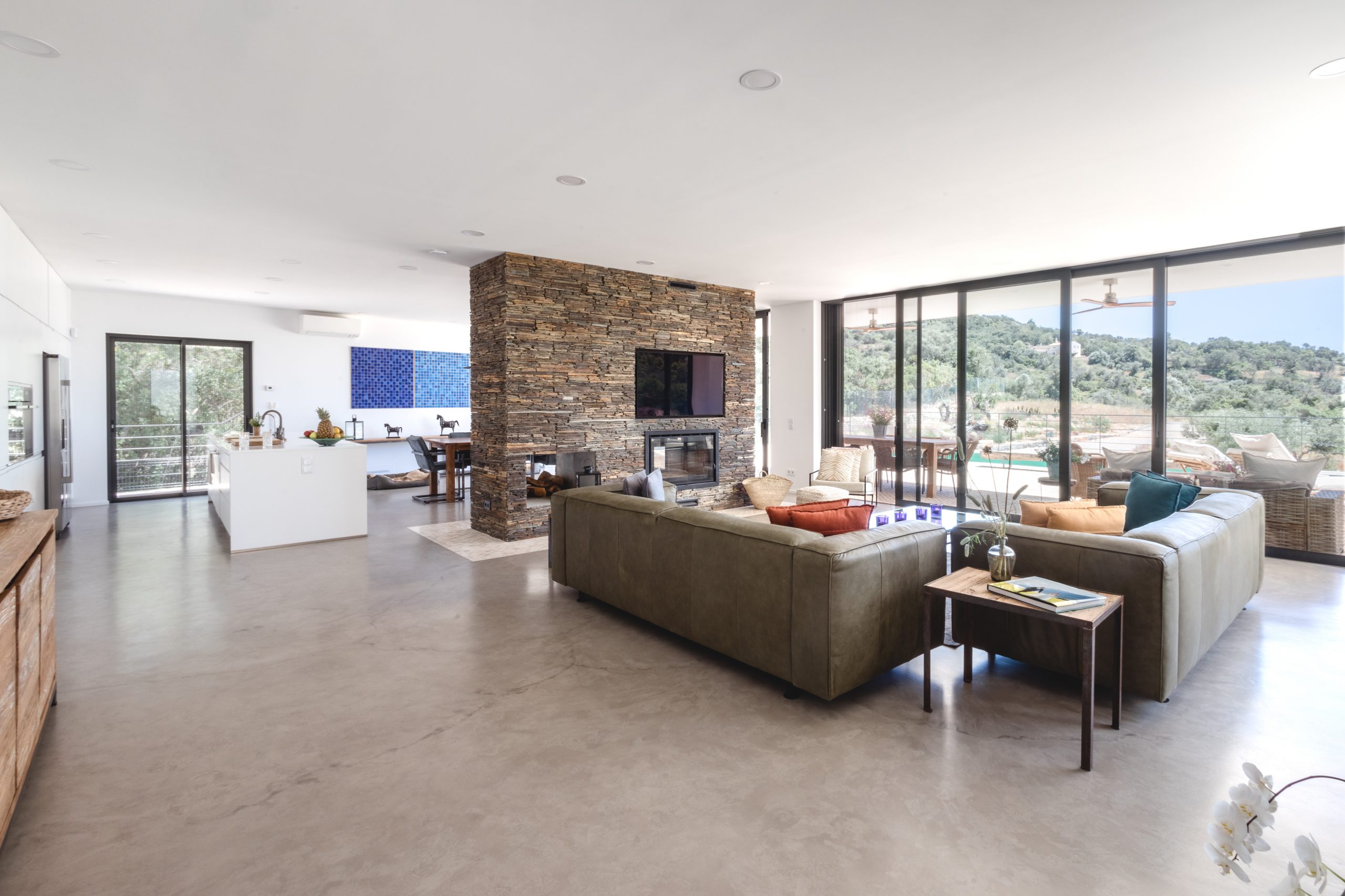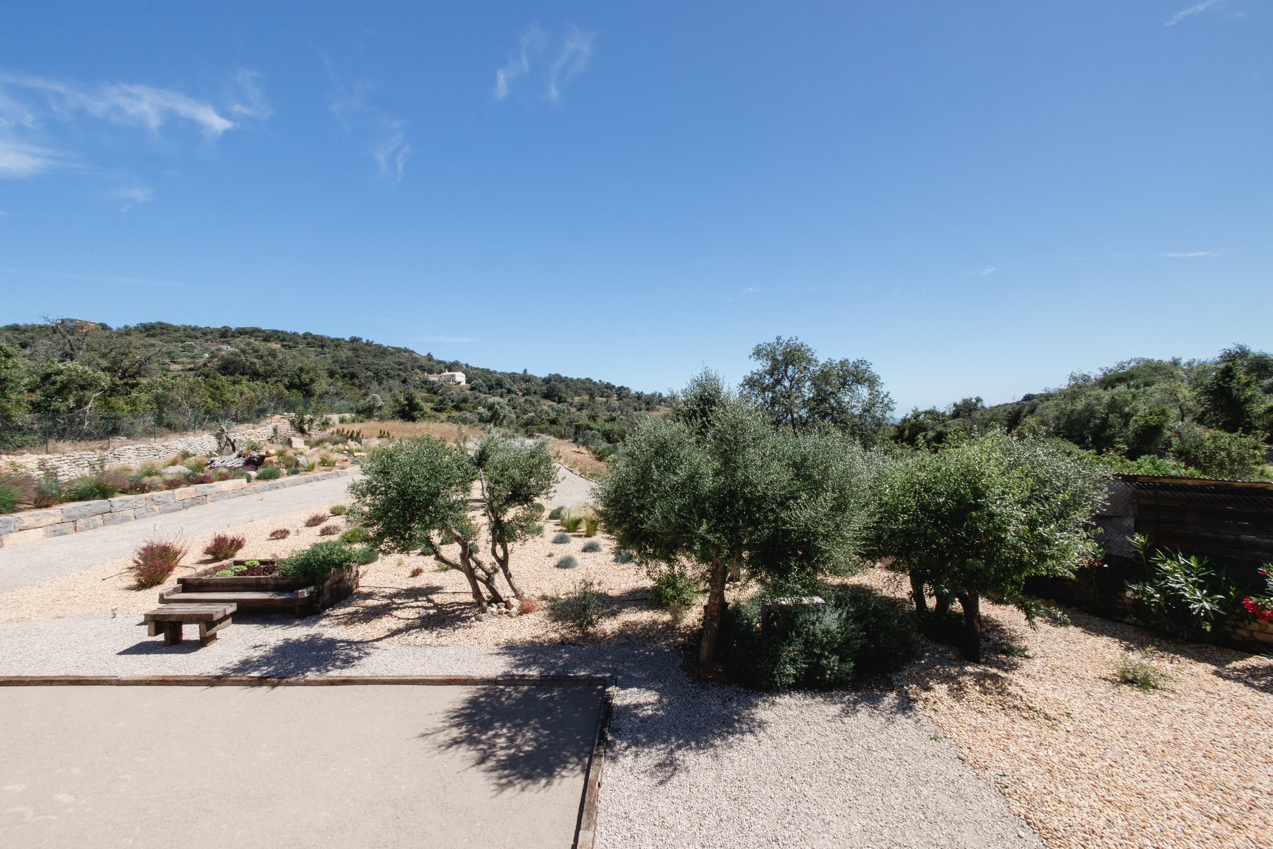 Opting for a trapeze-shaped home, as is common in many of our designs, North-facing bedrooms line the shorter side of the trapeze, while south-facing living and kitchen areas on the house’s longer side ensure maximum sun exposure and passive heating. The setting of the house was carefully places between existing Mediterranean vegetation.