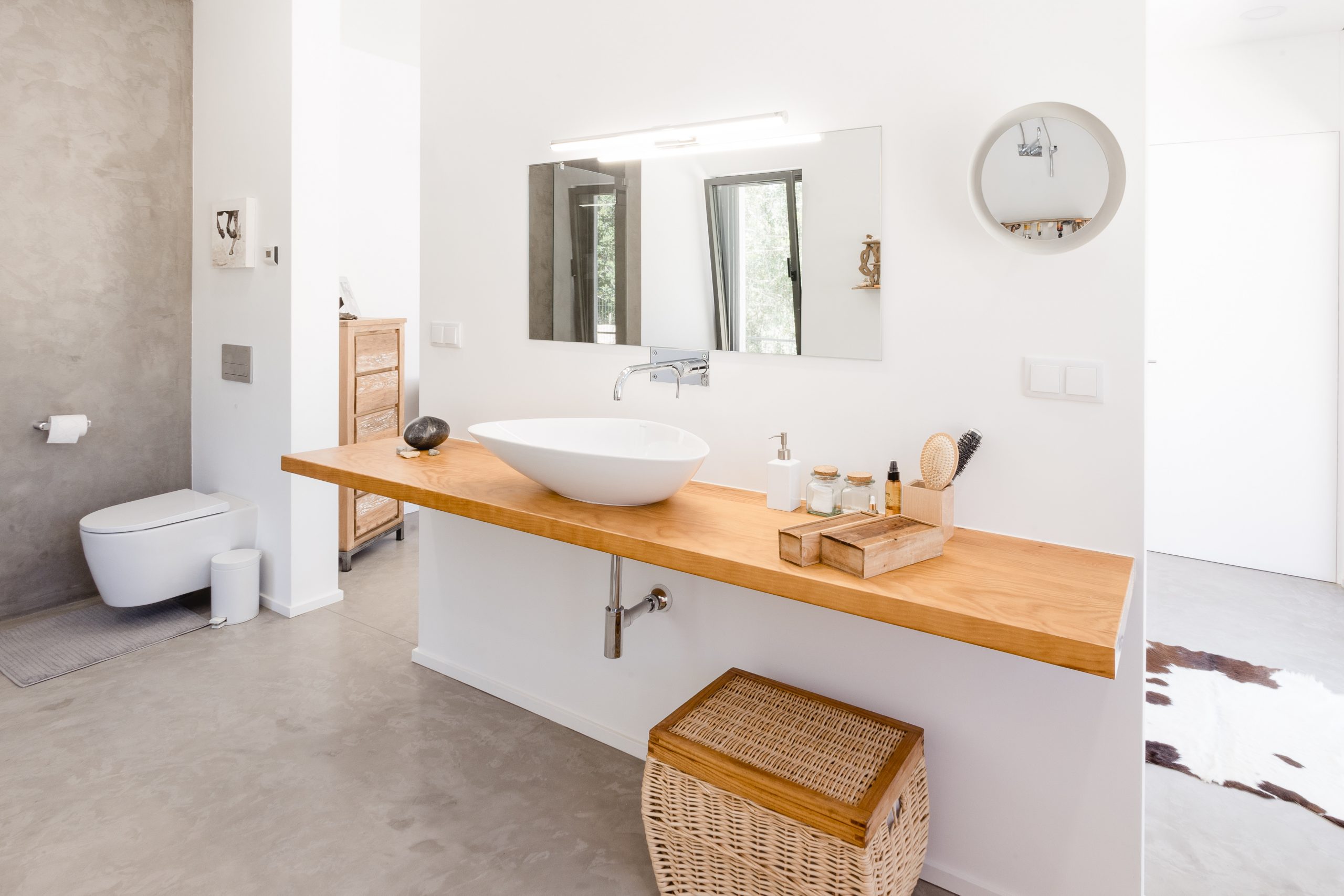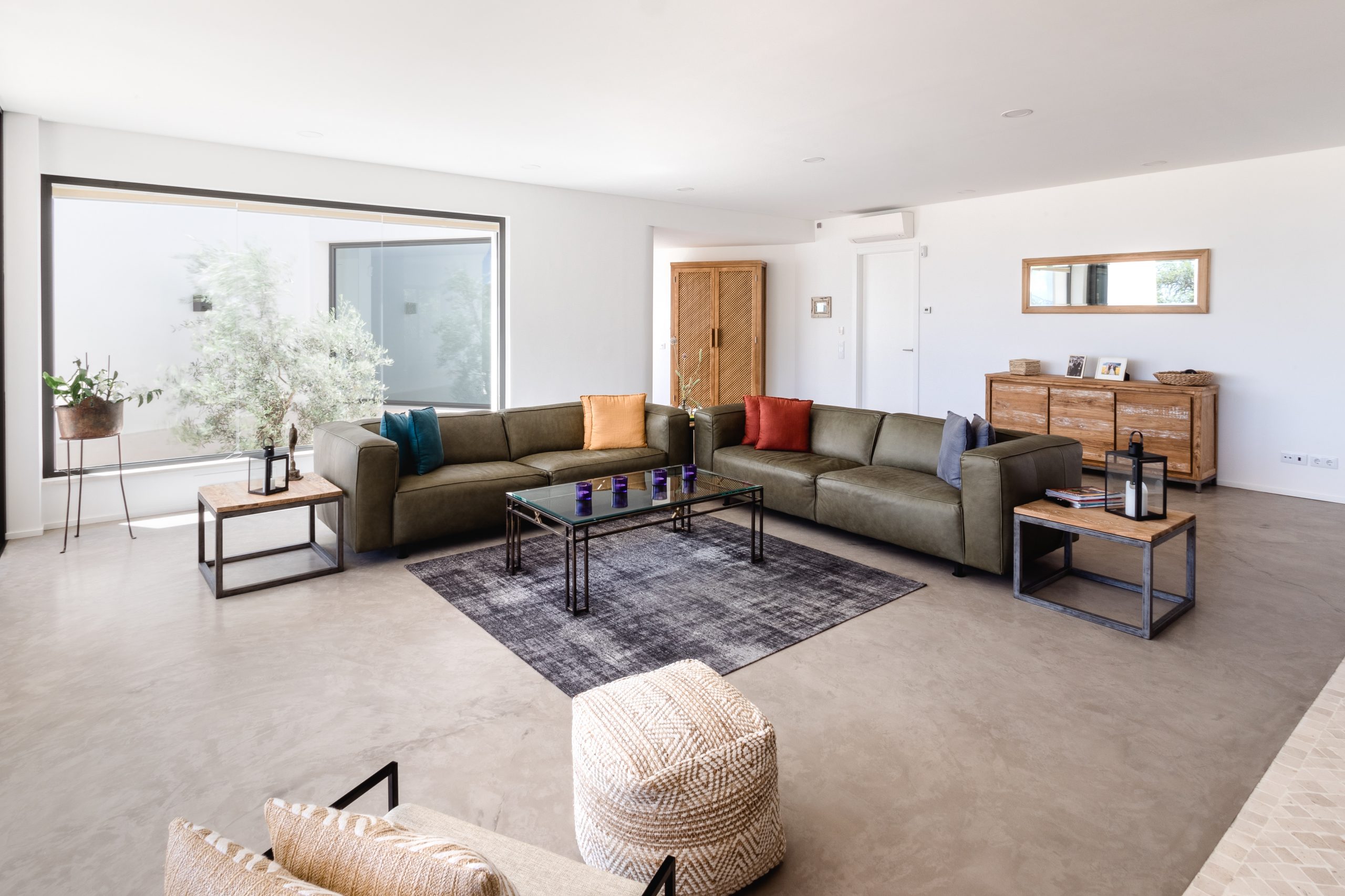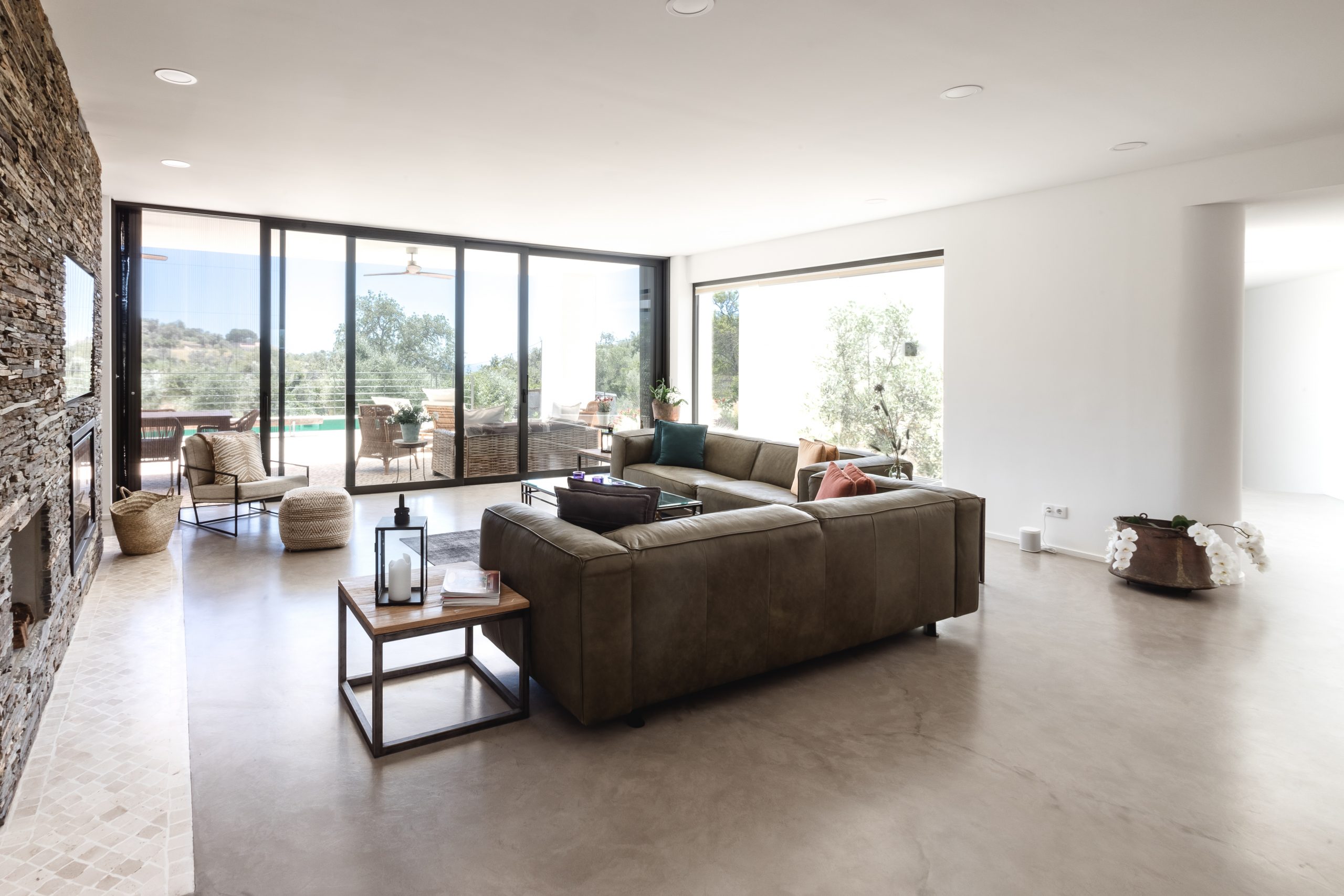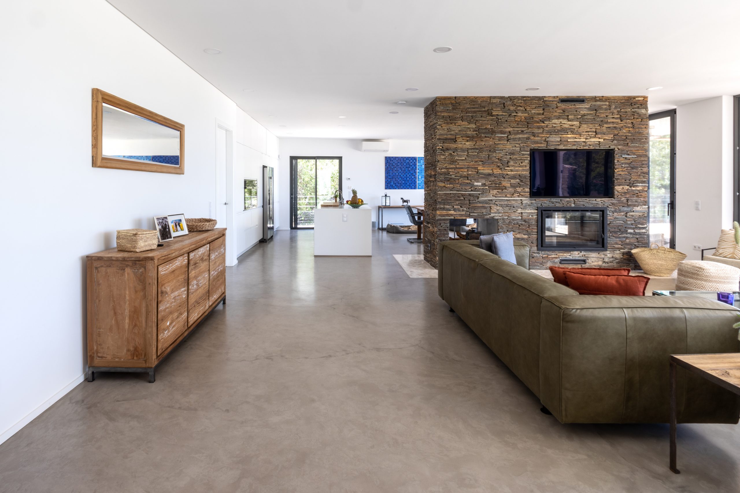 As in all our refurbishments, all efforts went into retaining all existing elements, keeping as much of the natural stone walls as possible. However, they were thoroughly insulated and plastered for a clean finish and maximum temperature stability. New materials were also added, from an imitation stone feature wall in the living room to fresh-looking timber on upstairs ceilings, not to mention the Microcement used for floors and bathrooms. A focus on the durability and longevity of all materials ensures minimum upkeep over time, minimising the house’s carbon footprint from the moment it is built into the future.