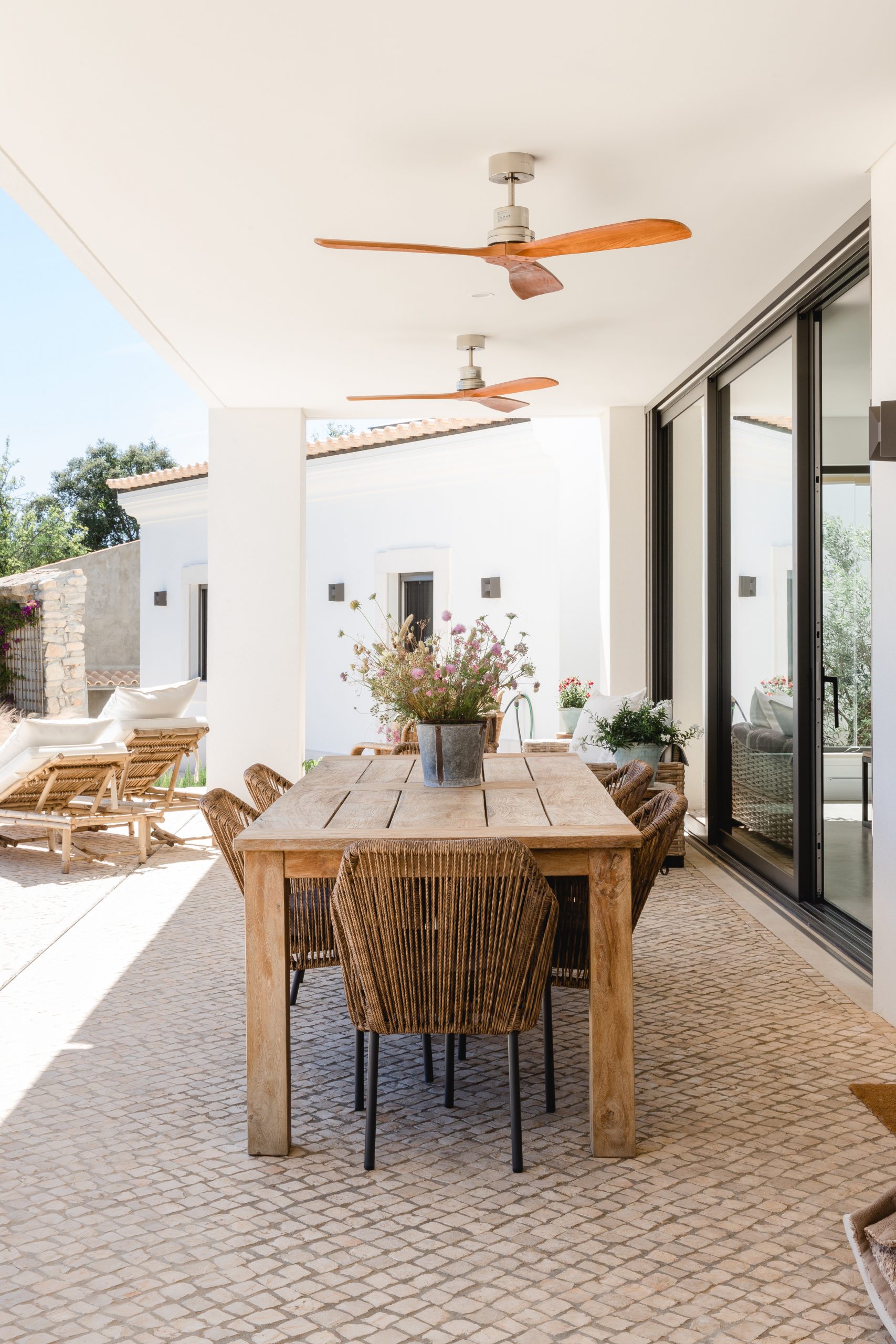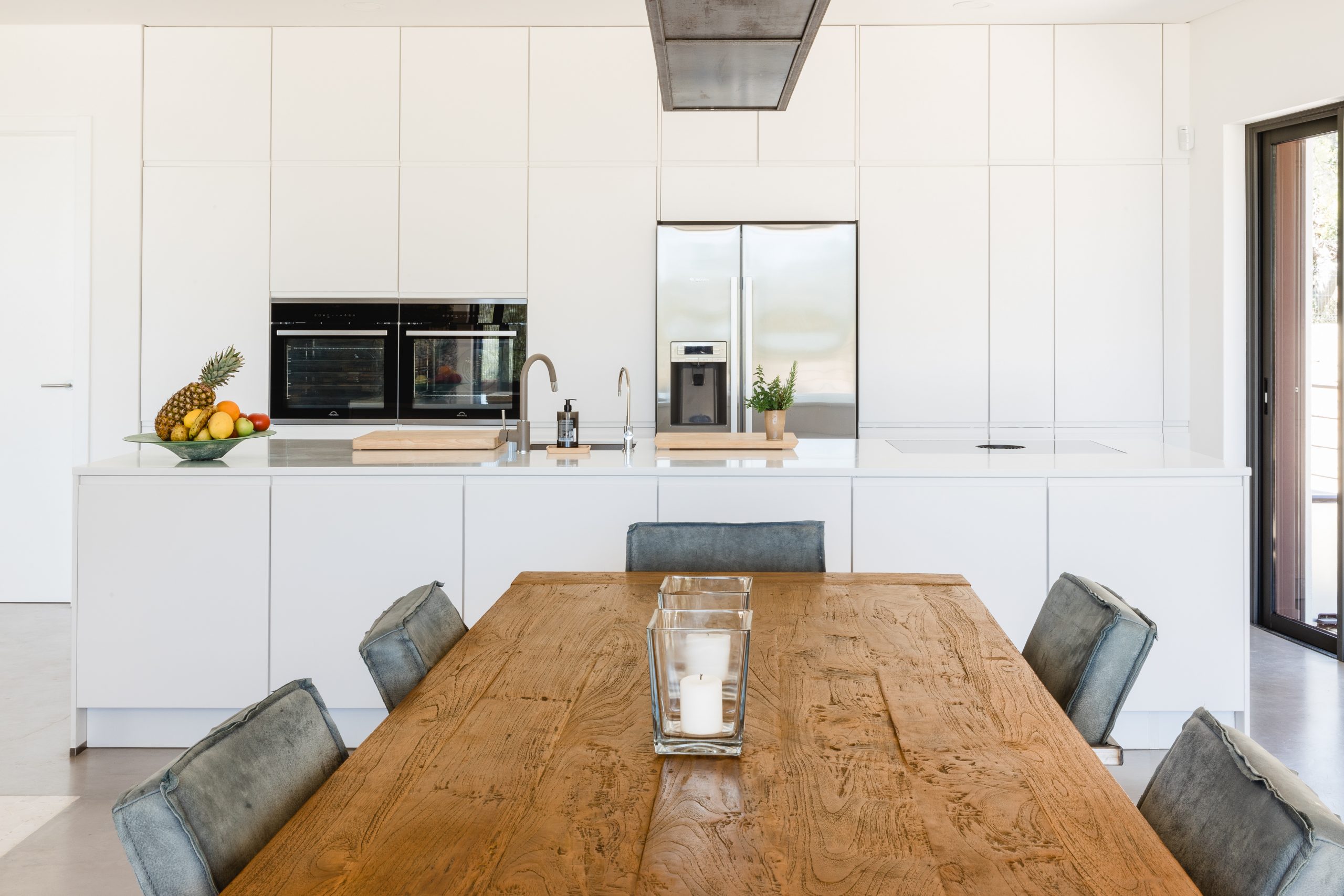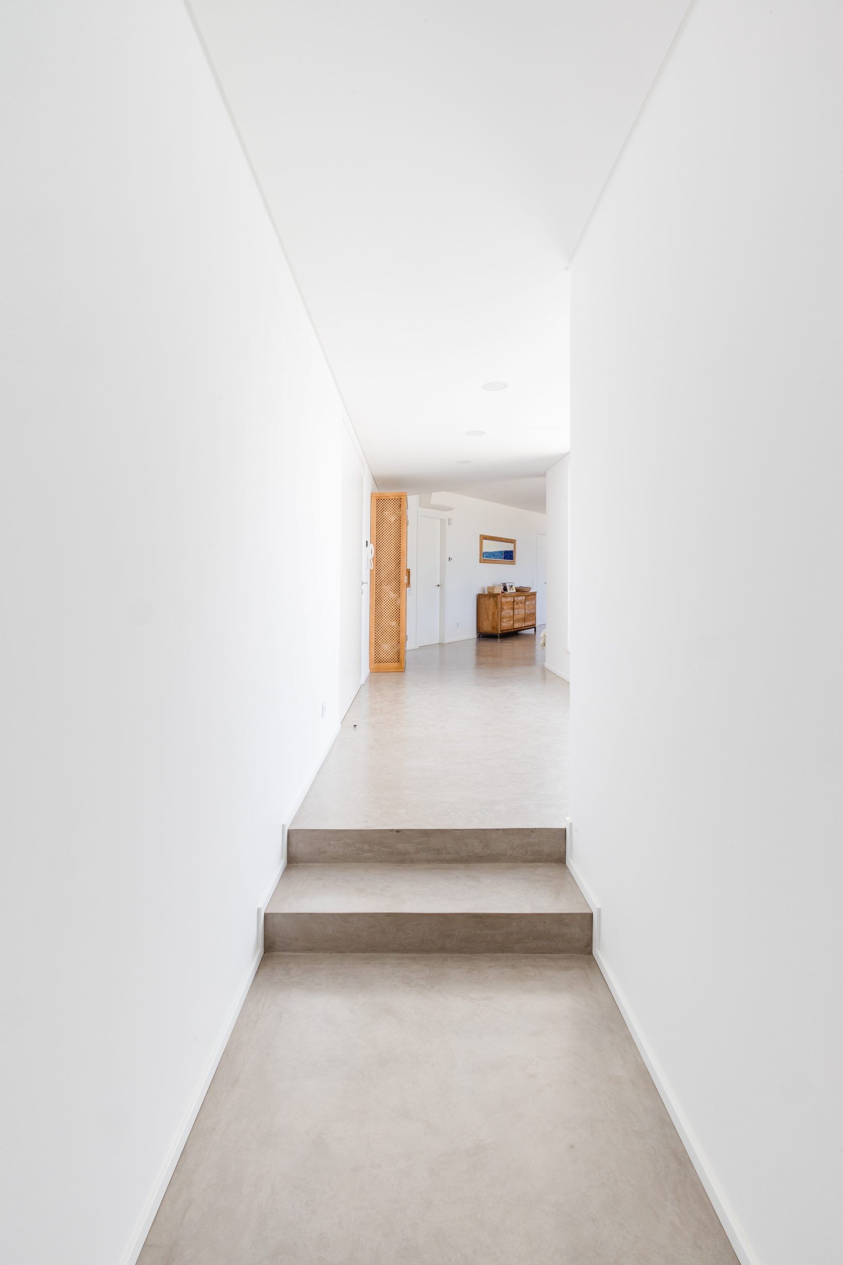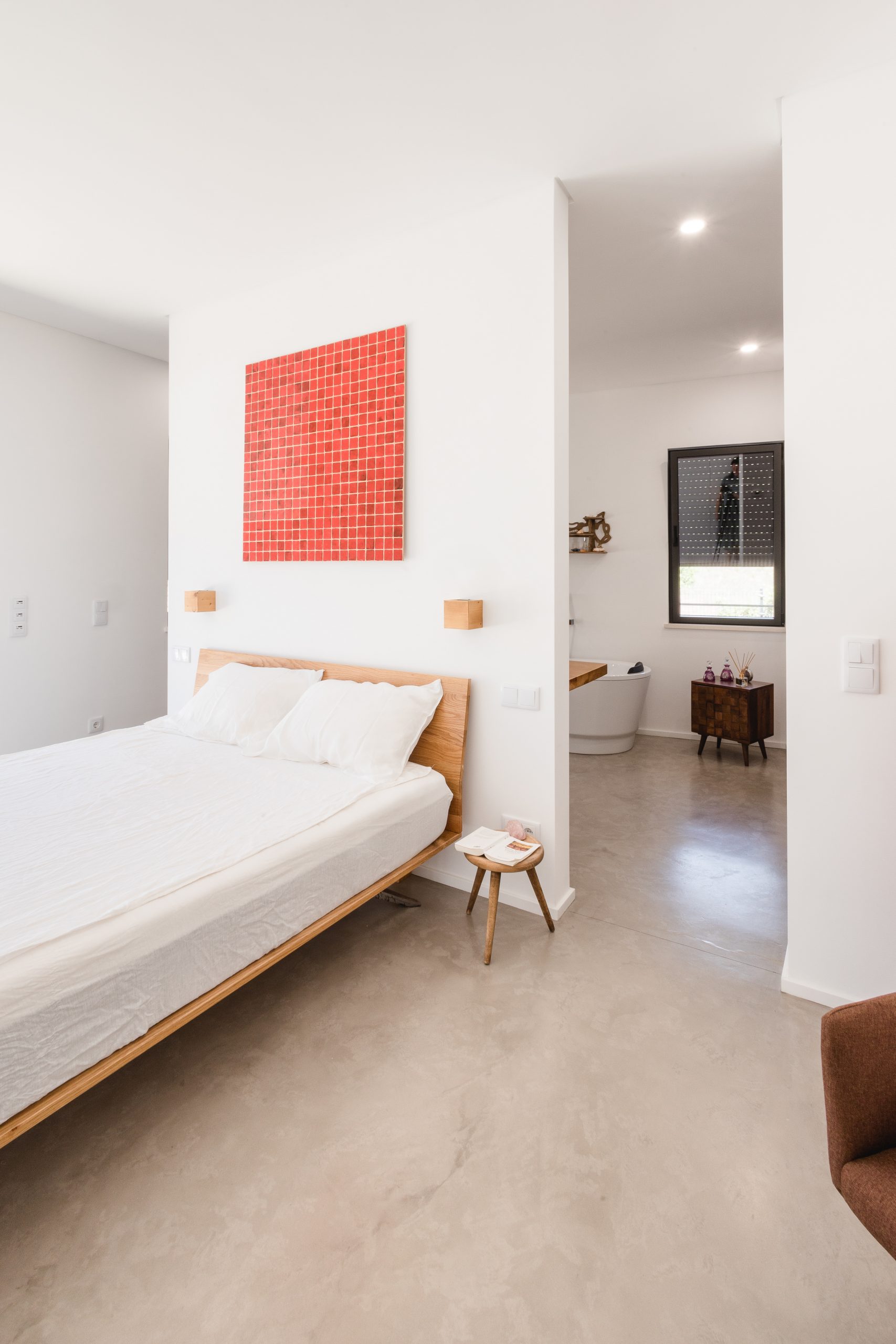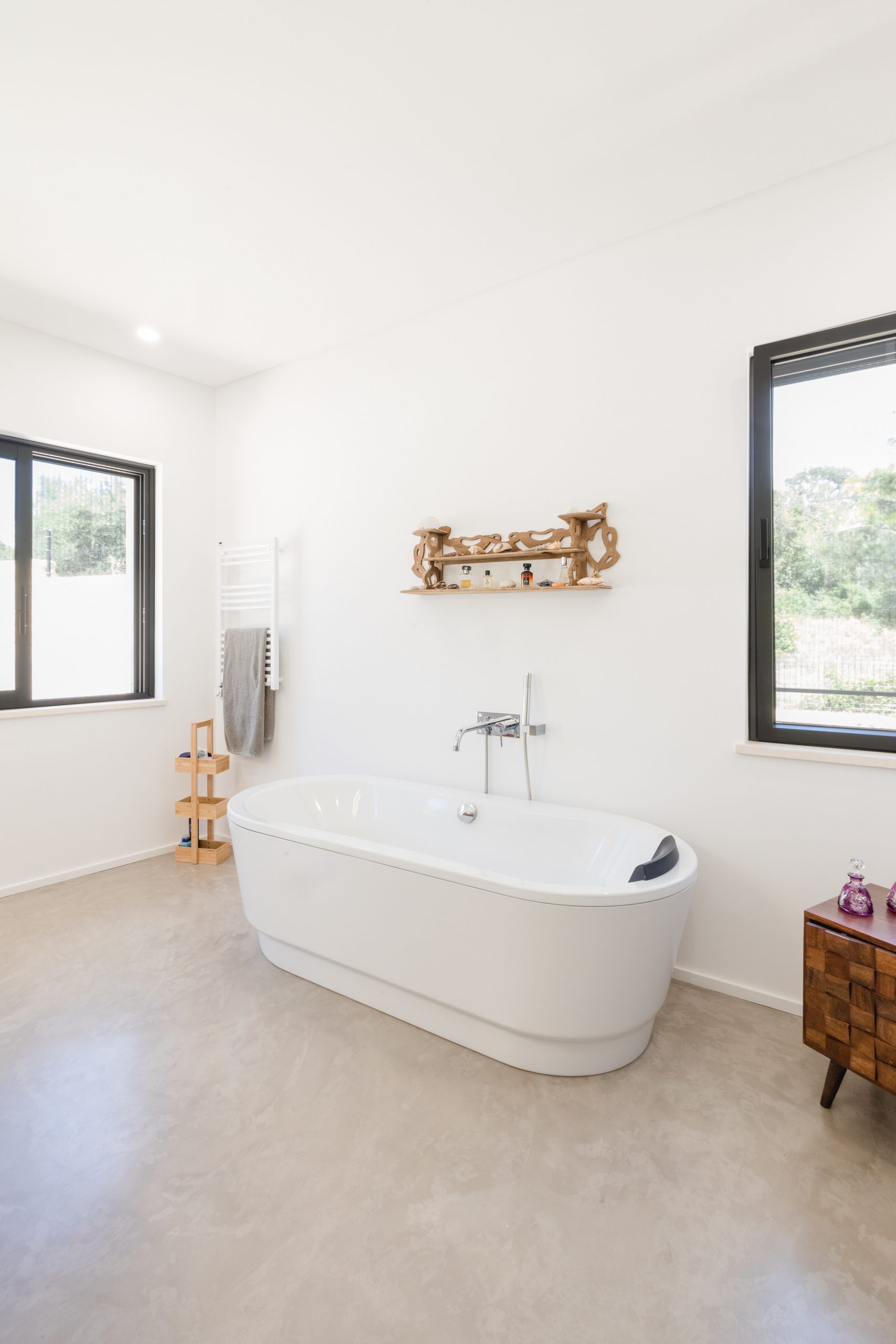 The brand-new home on a hill has full sun exposure year-round, which, in the blistering heat of the Algarve, could become uncomfortable in summer. However, built according to passive house principles, the house features several elements that ensure inside temperatures are kept constant and comfortable. These include a roof overhang to the south to protect from direct sunlight while still allowing for passive winter heating to take place. High-performance windows provide energy efficiency, used alongside energy-saving appliances and water-saving landscape design to ensure maximum harnessing of all the elements, allowing this build to make the most of the nature it is built in and around.